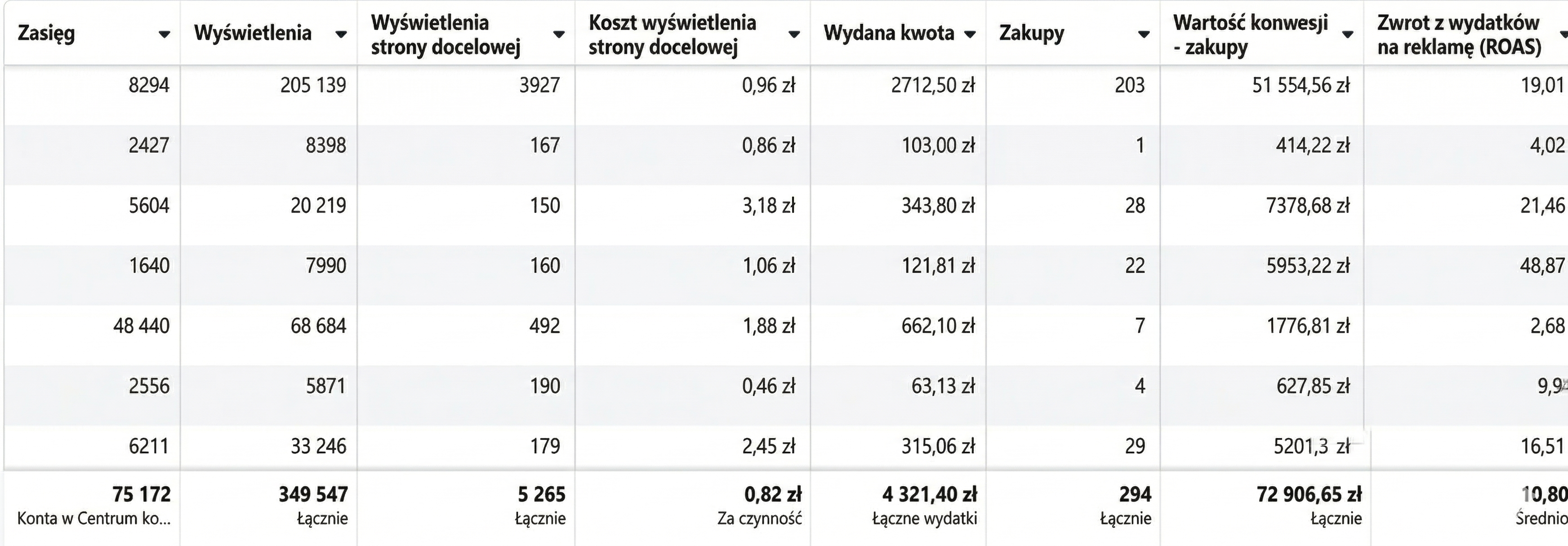 Dokładnie widzisz, ile osób zobaczyło reklamy, ile kliknęło i ile sfinalizowało zakup.